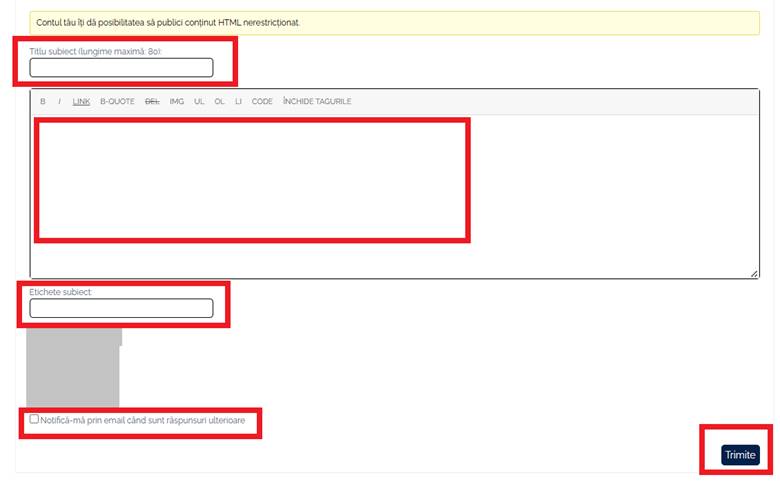 4. Apasă pe butonul „Trimite” pentru publicarea subiectului.